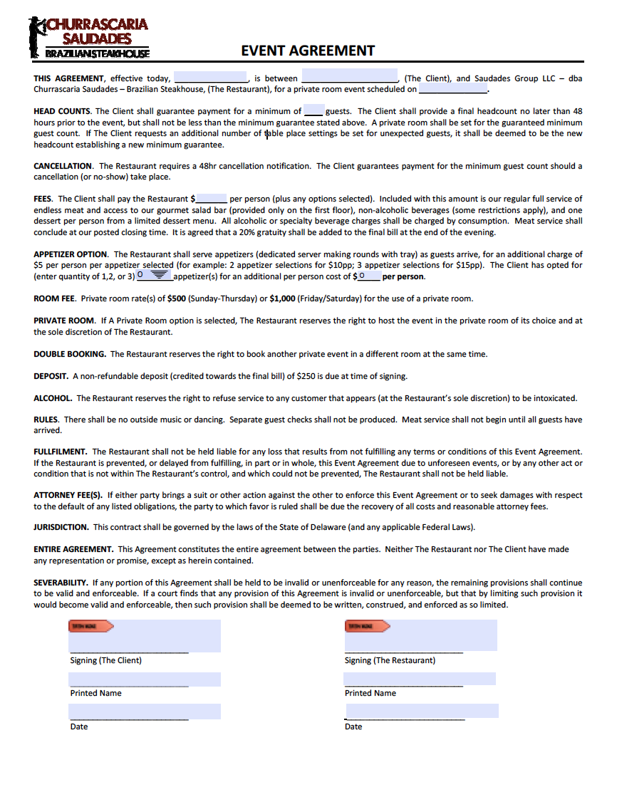 EVENT AGREEMENT (non-pharma)