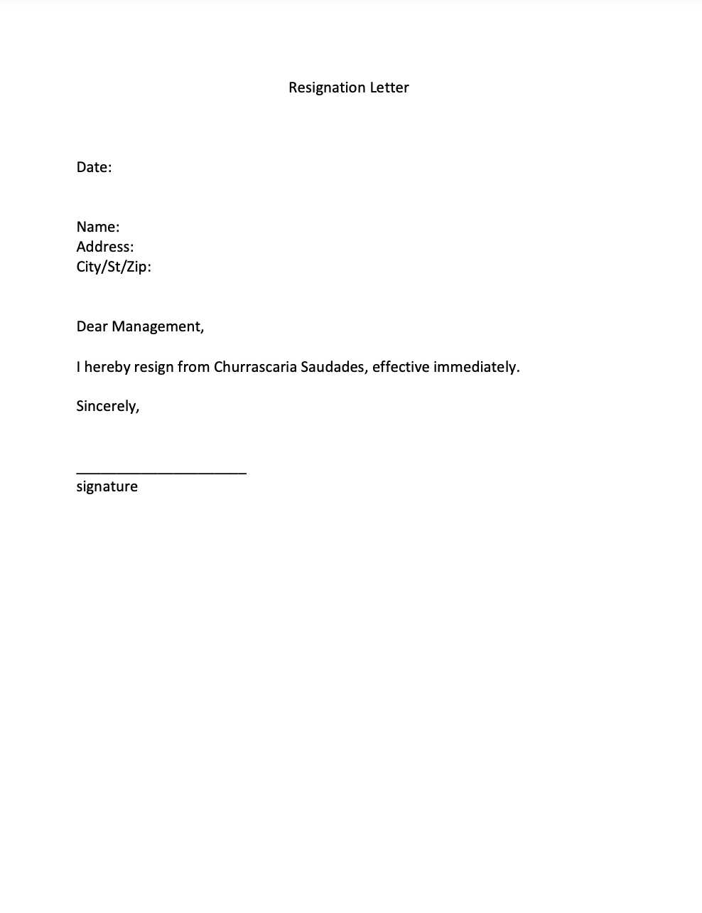 RESIGNATION LETTER