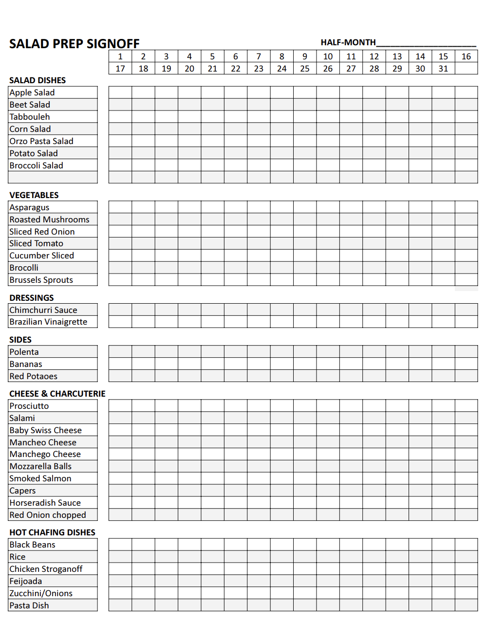SALAD PREP LOG